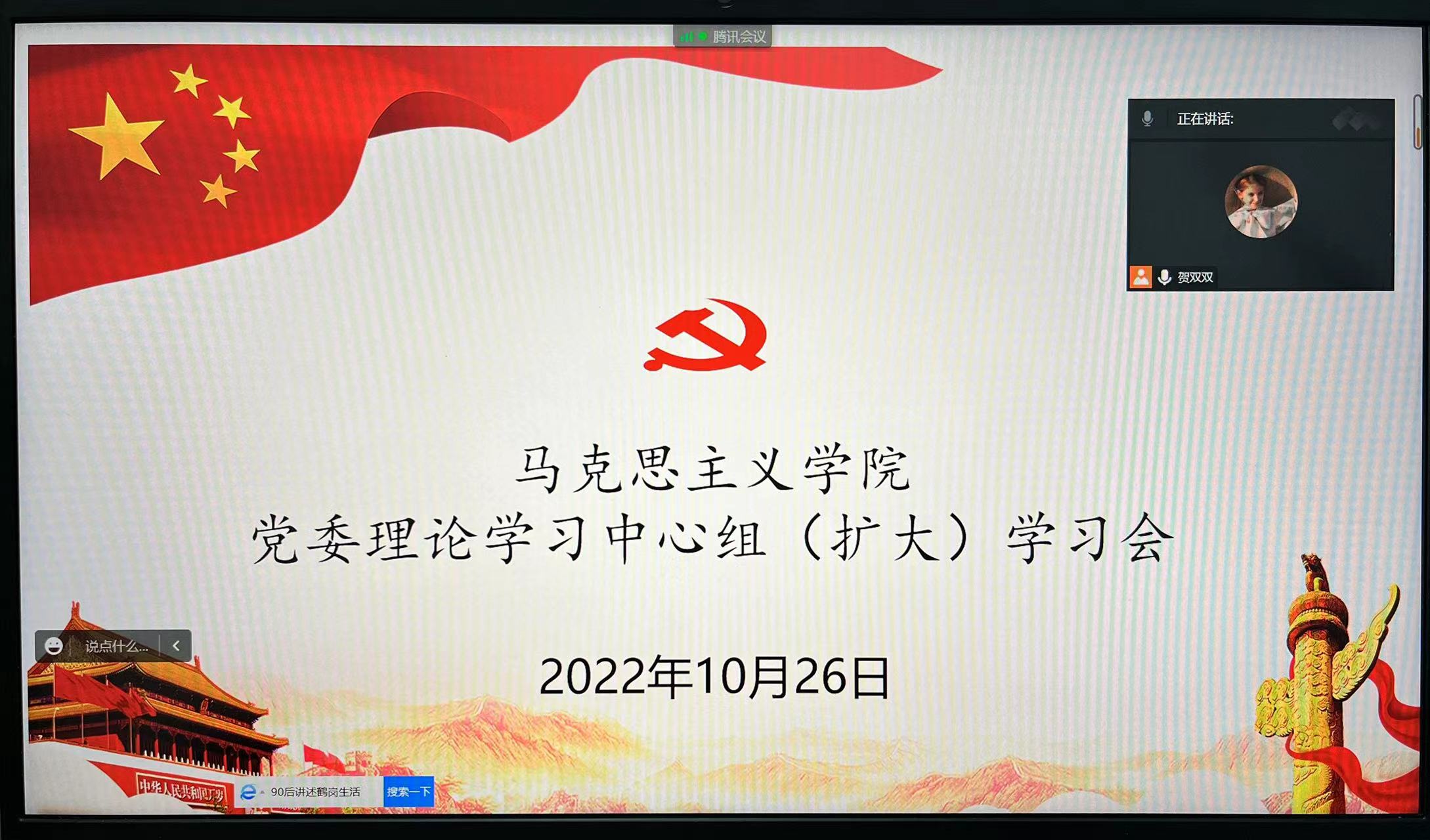10月26日上午,69书吧 党委理论学习中心组(扩大)线上举行党的二十大精神集体学习。校党委副书记郭武军、学院班子成员、党委委员、党支部书记、教研室主任、科级干部、教师代表和学生代表参加了学习。学院党委书记刘驰主持会议。