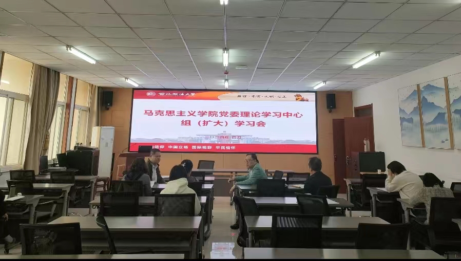 在会议室组织召开党委理论学习中心组(扩大)学习会。学院领导班子、党委委员、教研室主任、党支部书记,部分教师代表参加了会议。会议由学院党委书记刘驰主持。