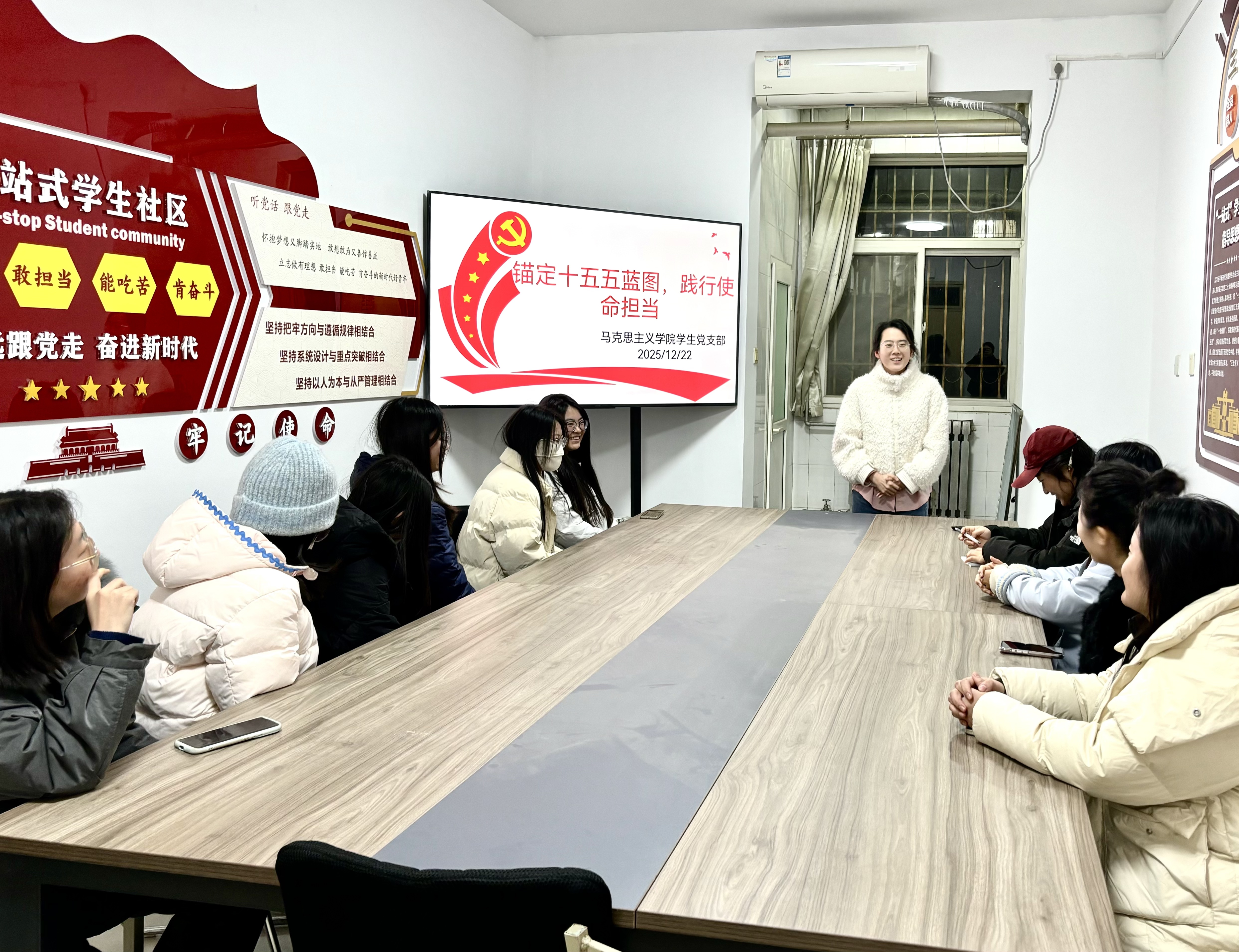 为深入学习贯彻党的二十届四中全会精神,12月22日晚,69书吧 学生党支部于11号公寓“一站式”学生社区开展“锚定十五五蓝图,践行使命担当”主题党日活动。