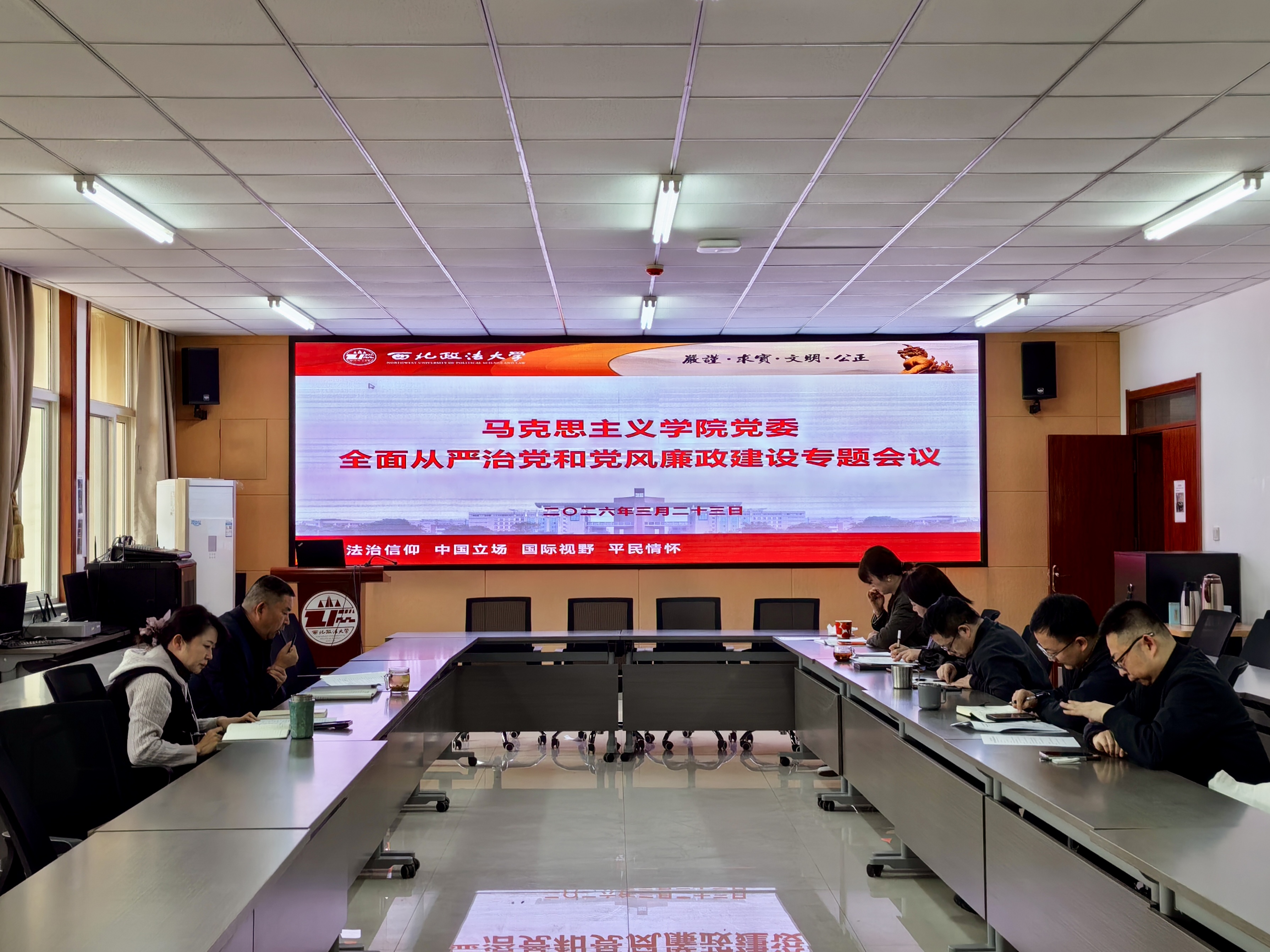 会议强调,学院党委要以此次专题会议为契机,提高政治站位,把全面从严治党、党风廉政建设与思政课主阵地建设、人才培养、学科发展紧密结合,以正确政绩观引领办学治院方向。要强化责任落实,严格执行党风廉政建设责任制,切实履行“一岗双责”,把管党治党政治责任扛牢抓实。要聚焦廉政风险防控,紧盯重点领域、关键岗位、重要环节,健全长效监督机制,扎紧制度笼子。要深化作风建设,持之以恒正风肃纪,筑牢廉洁自律思想防线。要坚守育人初心,加强和改进思政课建设,坚持不懈用习近平新时代中国特色社会主义思想铸魂育人。通过此次会议统一思想,压实责任,为学院“十五五”规划开局起步,加快推进重点马院建设提供坚强纪律保障。