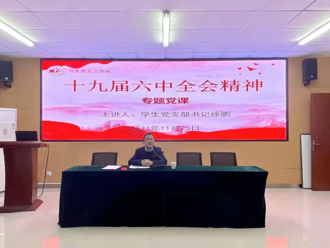学生党支部书记徐鹏在长安校区诚意楼五楼会议室组织召开“学习党的十九届六中全会精神”专题党课,学院全体学生党员、发展对象以及部分入党积极分子参加了党课学习。