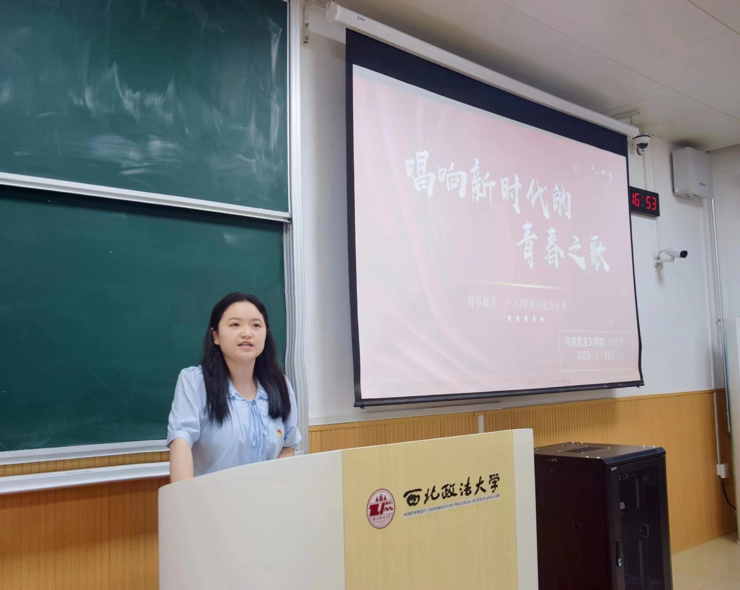 2020级思想政治教育专业硕士研究生王转军应邀为行政法学院本科生做题为“唱响新时代的青春之歌”的理论宣讲。