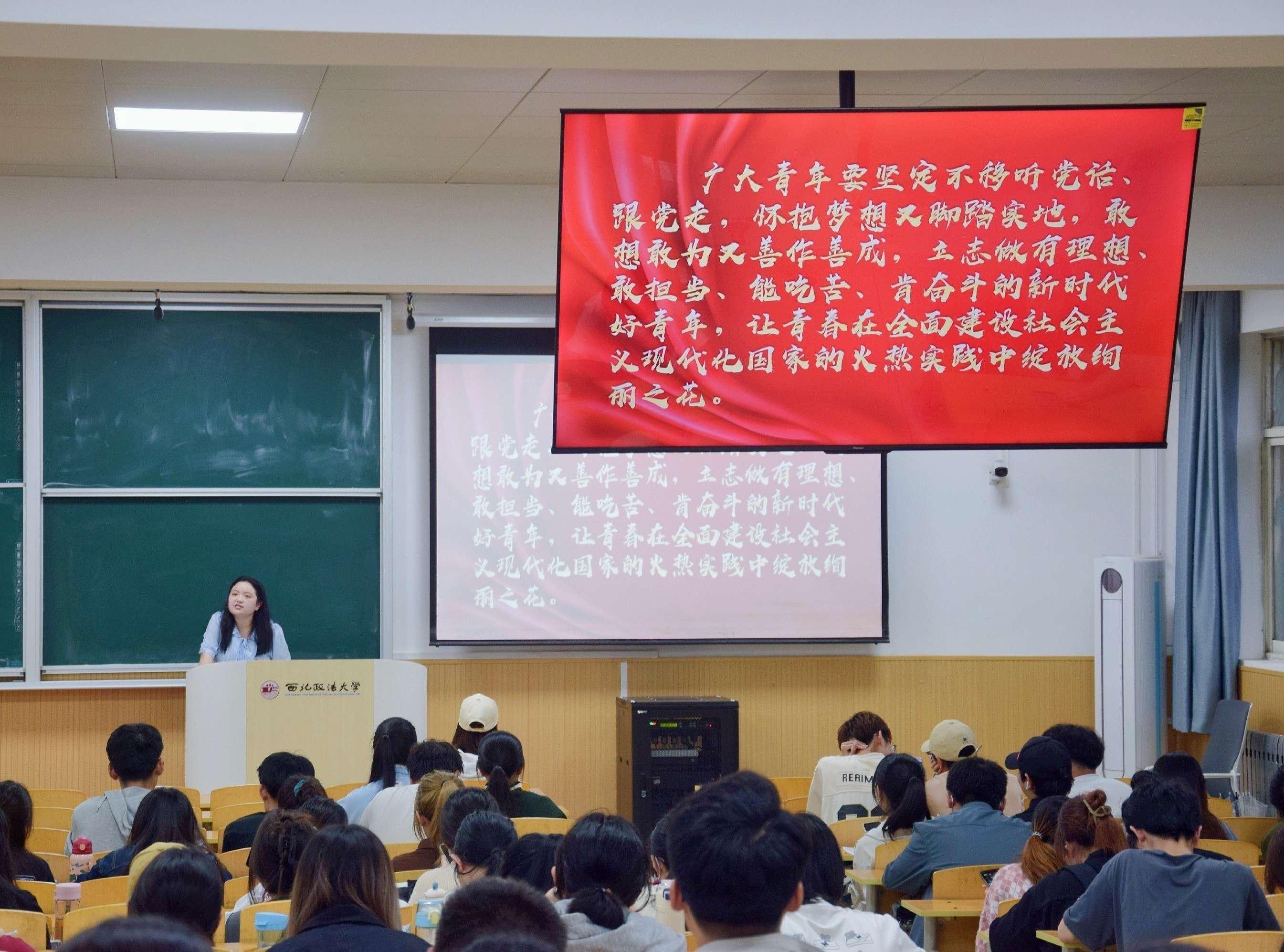 王转军围绕党的二十大报告中习近平总书记对青年的寄语展开宣讲,结合自身学思践悟,以唱响觉醒年代的青春之歌、重走知青岁月的青春之路、勇担奋进征程的青春之责三个部分为同学们讲述了革命年代先烈们的热血与作为、青年总书记的坚韧不拔与勤奋好学以及新时代青年的使命与担当,启示大家要守初心、担使命、扬青春、共逐梦,做有理想、敢担当、能吃苦、肯奋斗的新时代大学生,用青春的能动力和澎湃力激荡中华民族伟大复兴之春潮,唱响自身“青春之歌”。
