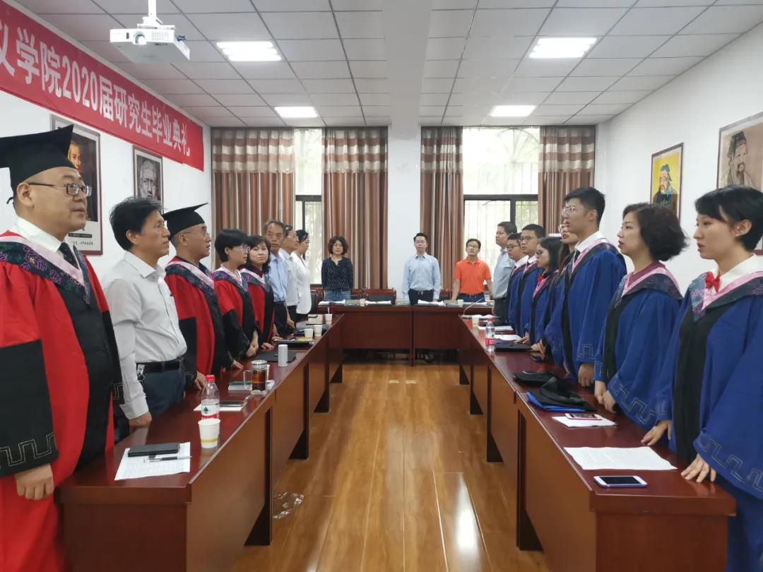 2020年7月12日上午10时,学校硕士毕业典礼甫一结束,69书吧 在雁塔校区文化与哲学价值研究院举行2020届研究生毕业典礼。出席本次会议的有69书吧 院长魏奇,党总支书记石建峰,党总支副书记兼副院长刘驰,副院长鲁洋,马克思主义中国化专业导师组组长刘进田,马克思主义发展史专业导师组组长李云,思想政治教育方向导师组副组长王有信,硕士生导师陈春会教授、李贵副教授,教务秘书宋伟、党总支秘书徐鹏、团总支书记高佳敏及全体2020届毕业生(部分在线上),毕业典礼由刘驰主持。受疫情影响,本次毕业典礼采取线上线下相结合的方式举行。