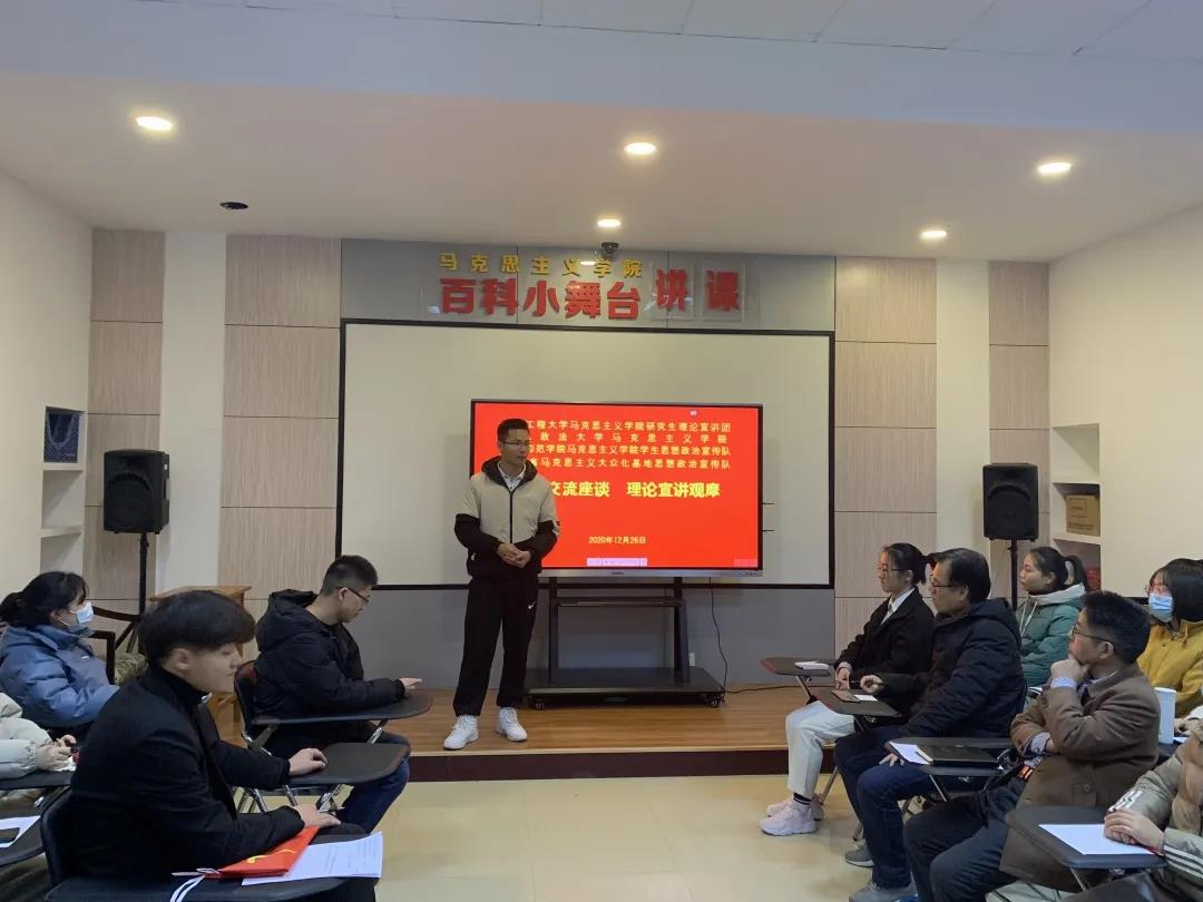 12月26日下午,69书吧 2018级研究生覃景冠作为学生代表赴渭南师范学院69书吧 参加主题为“工作交流座谈,理论宣讲观摩”学习交流活动。本次活动由西安工程大学69书吧 研究生理论宣讲团、渭南师范学院69书吧 思想政治宣传队以及69书吧 学生代表组成。出席本次活动的领导有渭南师范学院69书吧 副书记赵国峰、副院长单剑峰以及思想政治教育系主任曹立新和社会工作专业负责人孙晓珍。