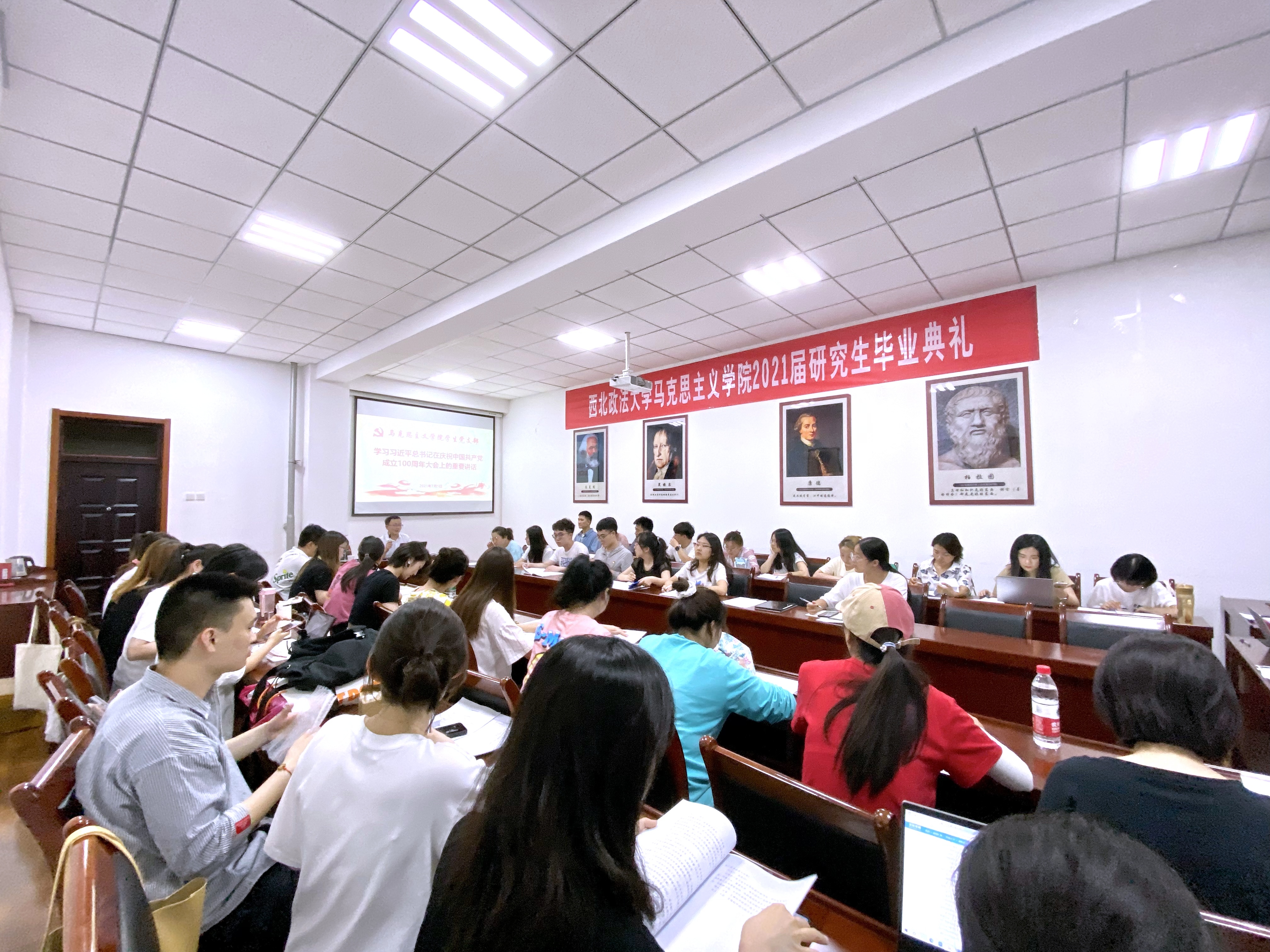 会上,徐鹏对“七一”重要讲话从九个部分进行了系统深入的领学。他表示,“七一”讲话,共7300字,但句句金句,字字珠玑,将中华民族的百年历程和伟大成就生动描绘了出来,值得背诵,刻入心中。在学到讲话的第二部分“回顾百年”和第五部分“以史为鉴、开创未来”时,徐鹏强调,“回顾百年”真正将百年党史的四个阶段贯通了起来,但归结为一个主题,那就是实现中华民族伟大复兴。而“以史为鉴、开创未来”则一定要和我们正在进行的党史学习教育结合起来,用历史映照现实、远观未来。之后,徐鹏带领同学们学习了中共中央办公厅关于认真学习贯彻习近平总书记在庆祝中国共产党成立100周年大会上的通知,要求同学们认真学习“七一”讲话,确保真学真懂真信真用。他强调,习近平总书记的重要讲话,是一篇充满真理力量的马克思主义纲领性文件,我们要认真学、持久学,真正做到学深悟透、入脑入心。特别是要积极响应号召,做新时代的中国青年,要以实现中华民族伟大复兴为己任,增强做中国人的志气、骨气、底气,不负时代,不负韶华,不负党和人民的殷切期望!最后,徐鹏特别强调重要讲话中的“一个主题”“伟大建党精神”“党史划分的四个阶段”“九个必须”等表述具有重大理论创新价值,值得马克思主义理论学科研究生深入系统展开研究和思考。徐鹏建议研究生同学应积极主动地将重要讲话精神融入论文选题、学位论文撰写、日常学习思考等事项中。
