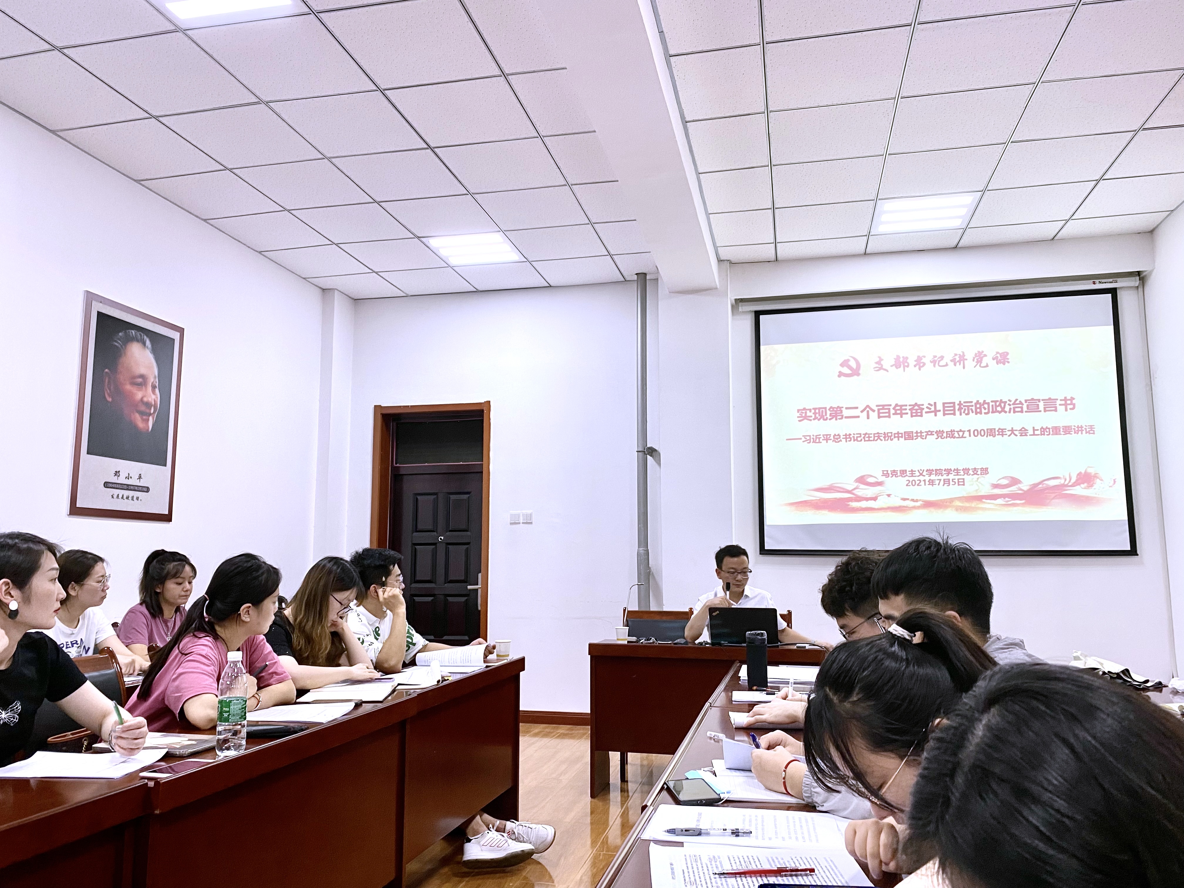 7月5日晚19时,69书吧 学生党支部在雁塔校区文化与价值哲学研究院会议室召开了“支部书记讲党课——学习习近平总书记在庆祝中国共产党成立100周年大会上的重要讲话”专题学习会。学生党支部全体成员和部分入党积极分子参加了本次会议。会议由学院组织员、学生党支部书记徐鹏主持。