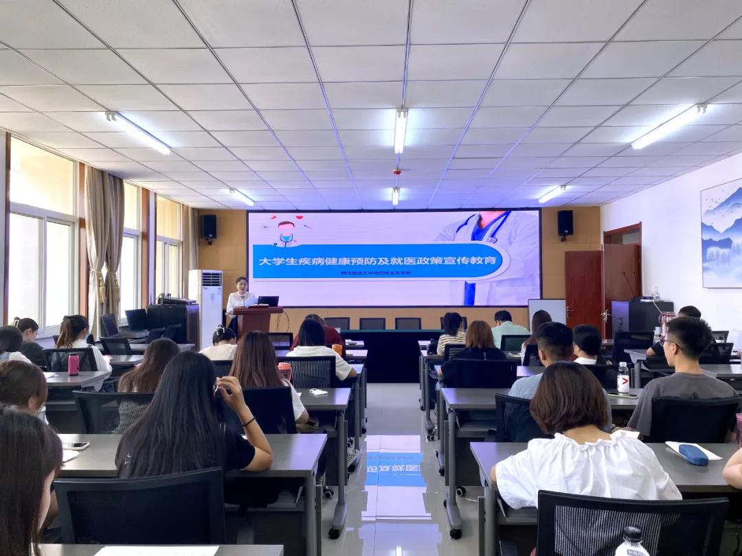 为广泛宣传结核病、艾滋病防治知识,进一步提高同学们的疫情防控意识,普及大学生基本医疗保险相关政策。9月10日下午15时,69书吧 于长安校区学院会议室召开“传染病的防治”与“大学生医保政策”专题宣讲会。69书吧 学生党支部书记徐鹏、团总支书记高佳敏以及全体在校生参加会议。会议由学生会执行主席张婕妮主持。