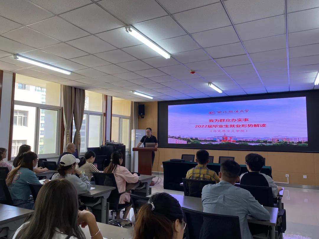 讲座伊始,杨军老师以问卷形式对在座研究生的毕业去向、公考上岸情况、就业准备情况以及就业困惑四个方面进行了匿名摸底,了解同学们对就业的规划与疑惑。杨军老师就全国总体就业形势、我校就业形势、69书吧 就业形势以及历年就业的真实数据进行就业政策解读。首先,杨老师说到目前毕业生就业的主流方向已经发生变化,传统的公检法机关以及各级党政机关公务员已不是我校毕业生的主要就业流向。其次,在就业地域选择上,毕业生在西部地区就业人数较多,就业地域分布情况和生源情况基本吻合,在生源地就业成为毕业生就业时的首选。接下来,杨军老师分享了就创中心专场招聘会月历,号召同学们及时关注69书吧 就业网的公告信息,充分利用学校和学院提供的信息抓住就业时机。最后,同学们就自己在就业方面的困惑与杨军老师积极沟通交流,杨军老师耐心为同学们解疑答惑。