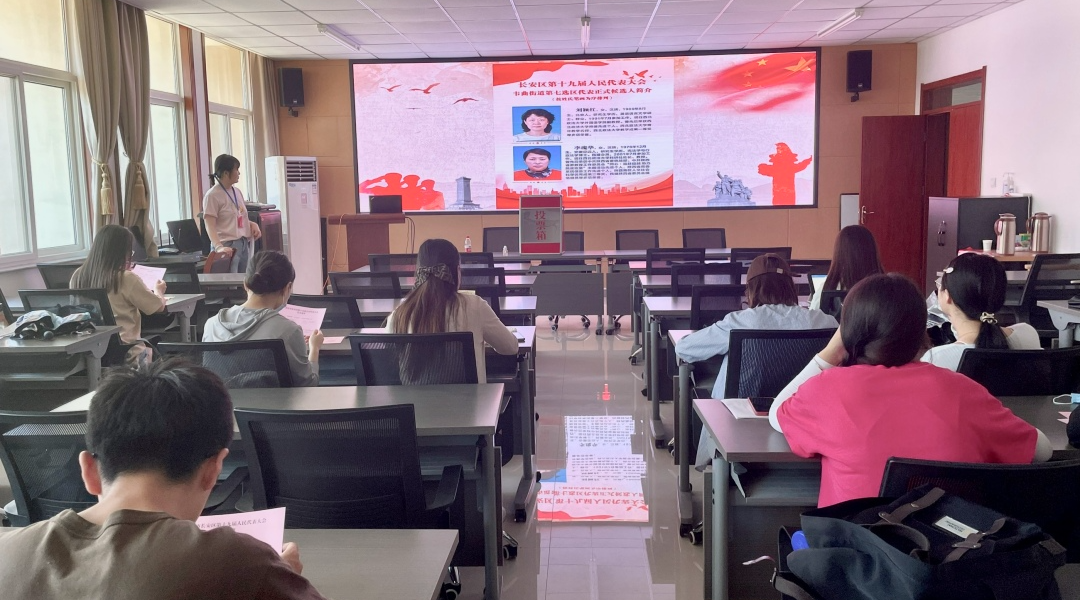 在长安校区诚意楼五层会议室召长安区第十九届人民代表大会韦曲街道第七选区选举大会。本次选举大会由学院辅导员刘栩源主持,2021级全体研究生参会。