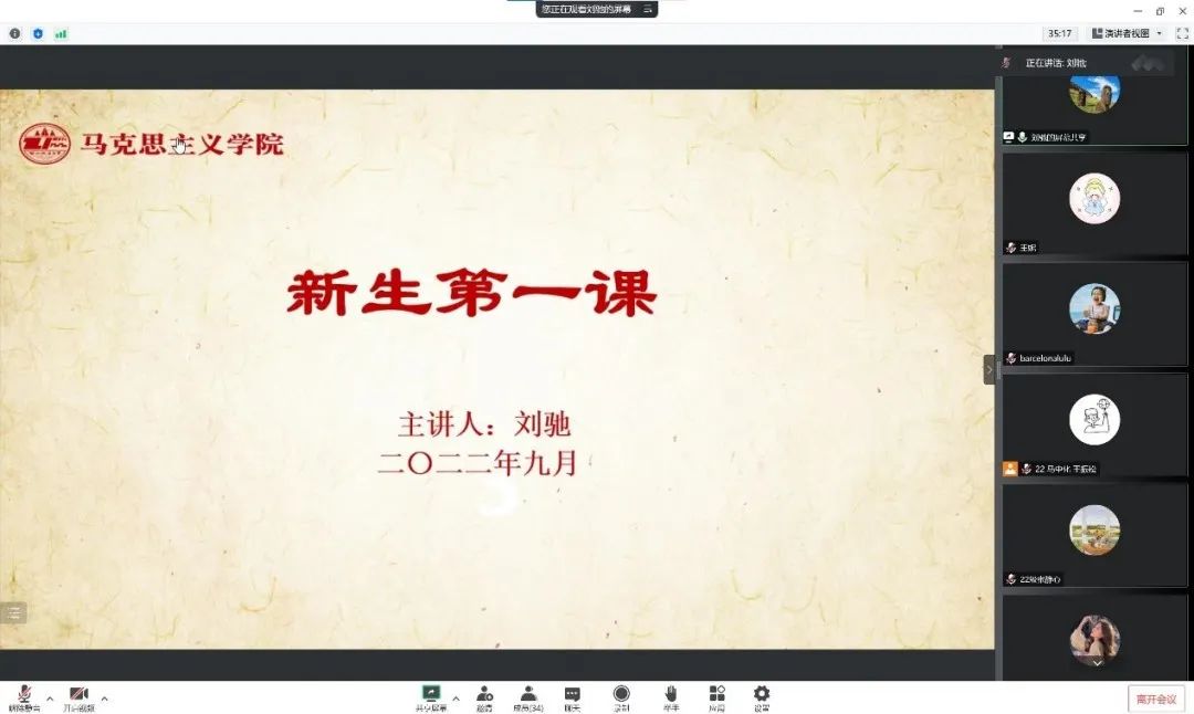 党委书记刘驰以线上方式为2022级研究生讲授“新生第一课”。学院学生党支部书记徐鹏、辅导员刘栩源以及2022级全体研究生参与学习交流。