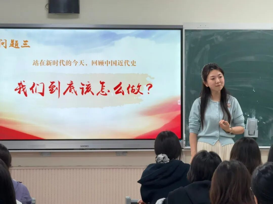 李彩玲老师以《抗争屈辱的中国近代史》为题,以深厚的历史视野,带领师生系统回顾了近代以来中华民族在屈辱中抗争、在磨难中奋起的艰辛历程。她紧扣课程重点,聚焦鸦片战争、甲午战争等重大历史事件,深刻剖析了西方列强入侵给中国社会带来的深重灾难,突出展现了中国人民不畏强暴、不甘沉沦、顽强抗争的英勇精神。李老师巧妙运用史料分析、影像资料、互动问答等多种教学手段,将宏大叙事与细节呈现有机结合,既有理论高度,又贴近学生认知实际,让在场师生深刻感悟“落后就要挨打、自强才能自立”的历史启示。