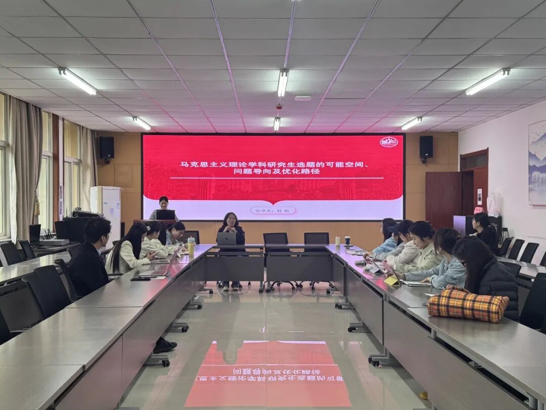 杜茹立足马理论学科选题实际,从选题空间、问题导向、优化路径三方面展开分享。她建议选题贴合导师方向、紧扣前沿热点,以小切口聚焦深耕;强调选题要立足真问题、兼具时效性与现实性;并指出要回归经典原著、深耕专业基础、参与学术交流、推动学科交叉,为学子理清了学术选题与备考的清晰方向。