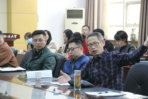 院长魏奇对座谈会讲话精神做了深入解读。魏奇院长强调习近平总书记是站在新时代人才培养的战略高度,从全面落实立德树人、实现民族复兴的两个维度突出思政理论课的重要性,结合重点马院建设规划,提出“四问”:1·思政课教师如何上好思政课?2·思政课教师如何发力 ?3·我校如何实现立德树人的目标 ?4·我们的重点马院如何有特色有实力?并结合重点马院建设规划,表达了“使命神圣、责任如山”的情怀及其对校党委和行政扶持重点马院的切实行动和暖心方案的谢意。马克思主义一级学科首席专家刘进田教授从理论高度分析了“八个统一”的深刻内涵,以及思政课创新的本质性、时代性、辩证性、整体性、高难性特征,提出新时代需要新思政,新思政需要新教师的要求。36年奉献思政课广受学生爱戴的副教授王有信、副院长鲁洋、首届最受欢迎的教师刘建国、赵琳、首届陕西省思政大练兵教学能手高海艳、军转博士徐树森等,围绕思政教师素养、课程改革等方面的内容提出各自不同的见解。
