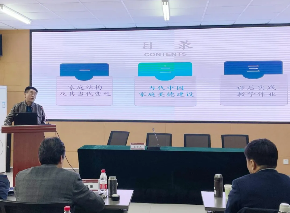 王有信副教授讲授的课程《当代中国家庭美德建设》,通过对家庭结构的解读提出了当代中国家庭美德建设的两点要求。讲述案例生动、语言准确、教学环节衔接自然,独特幽默的讲课风格吸引着在座的师生。