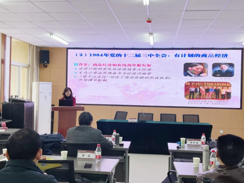 李云教授以《“建立社会主义市场经济体制”目标模式是如何形成的》为主题,通过对党的十二大、十二届三中全会、十三大、十四大关于社会主义市场经济的建设过程的梳理,为在座师生清楚了解社会主义市场经济的建立历史提供了理论参考,对建立社会主义市场经济的历史必然性有了充分了解。李云教授的课堂逻辑严谨、激情洋溢,老师同学们听完纷纷表示收获颇丰、意犹未尽。