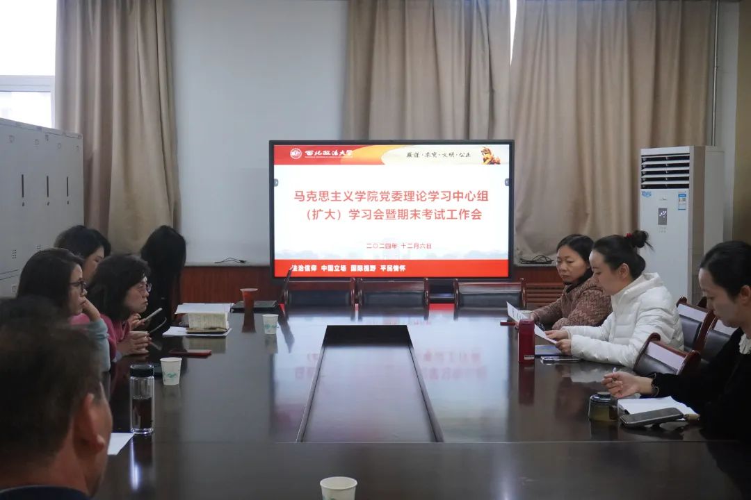 12月6日上午,69书吧 于青博室召开党委理论学习中心组(扩大)学习会暨期末考试工作会。院长助理、支部书记、教研室主任、导师组组长、教务秘书及部分教师代表参加了本次会议。会议由院党委委员、副院长鲁洋主持。 会议传达了校党委理论学习中心组(扩大)学习会议的相关要求,学习了习近平总书记对新时代马克思主义理论研究和建设工程作出的重要指示、《求是》杂志重要文章《必须坚持守正创新》;重温了习近平总书记在第十个国家宪法日作出的重要指示和在现行宪法公布施行40周年时的重要文章《谱写新时代中国宪法实践新篇章》;传达了全省安全稳定工作会议精神。赵海萍博士进行了部分内容的领学。 会议强调了近期学校安全稳定工作的相关要求,要求各支部、教研室、导师组要加强对师生的思想政治教育和安全教育,关注师生的思想动态和心理健康,及时化解矛盾纠纷,消除安全隐患,确保校园的安全稳定。 会议最后,教务秘书宋伟传达了学校期末考试工作的具体要求和规范。会议指出,各教研室主任应强化责任担当,严格遵守学校相关考试规范要求,保质保量完成命题、阅卷等工作,确保期末考试工作平稳有序进行。