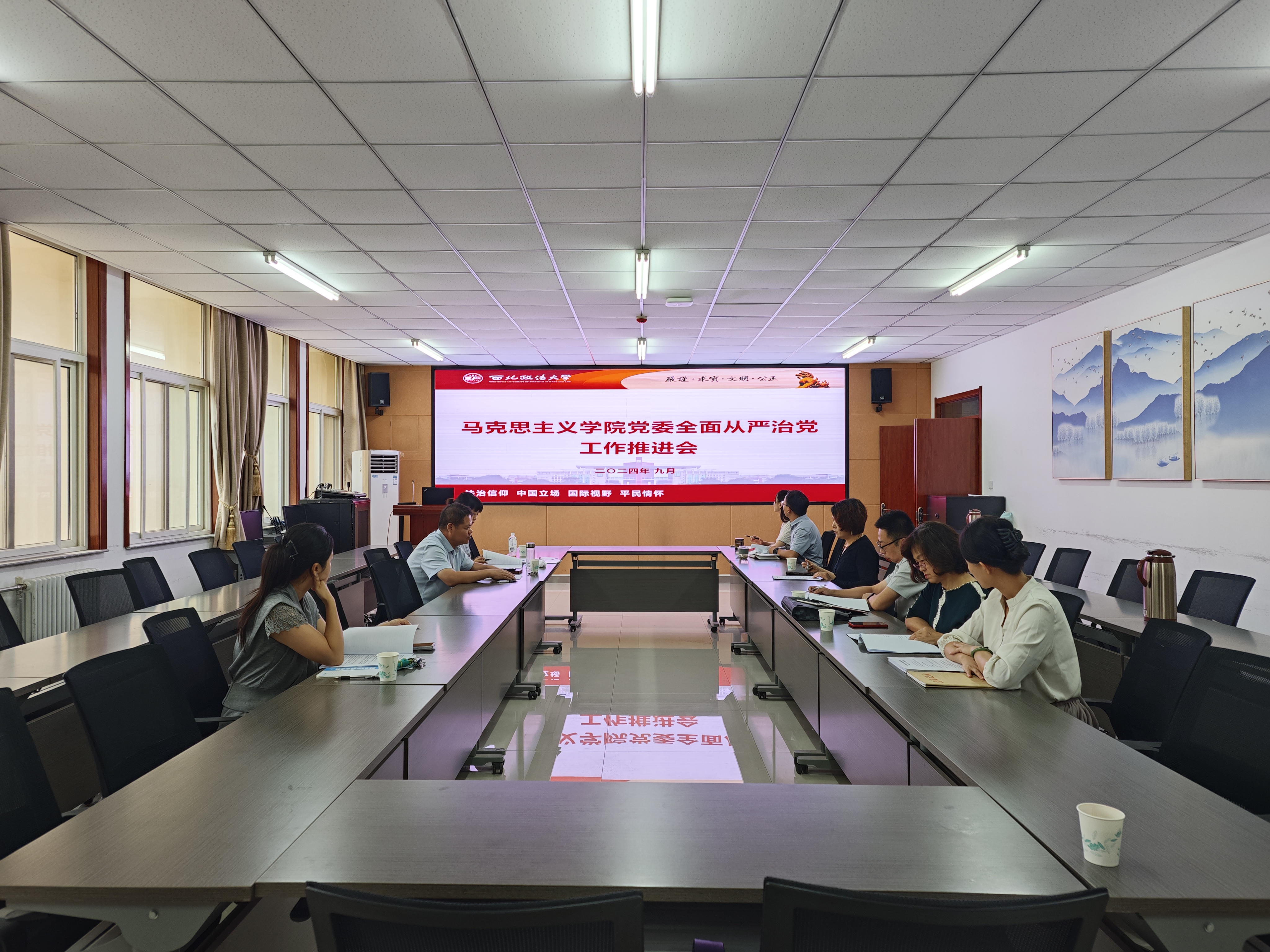 为进一步总结69书吧 党纪学习教育成果,推动全面从严治党向纵深发展。9月20日上午,学院在诚意楼五楼会议室召开全面从严治党工作推进会。学院党委委员、党支部书记、教研室主任以及教师代表参加了会议。会议由学院党委书记刘驰主持。     会上,大家再次学习了习近平总书记关于党纪学习教育的重要指示精神、中央党的建设工作领导小组会议精神,以及《中共69书吧 委员会2024年全面从严治党主体责任清单》等相关文件内容。结合党纪学习教育中的典型案例,明确了学院各个岗位可能存在的廉洁风险,对巩固深化党纪学习教育成果作出安排。     会议指出,要不断加强纪律建设,持续推动党纪学习教育常态化长效化,切实将党纪学习教育成果持续转化为新征程上推动学院发展的动力。要进一步统一思想认识,切实提高政治站位,不断强化学院全面从严治党和师德师风建设工作。     会议要求,全院教师要增强全面从严治党、师德师风建设的责任感和使命感,深刻认识全面从严治党的政治属性及新时代师德师风建设的重要性。以加强党的政治建设为统领,抓好师德师风建设,推动全面从严治党工作向纵深发展。