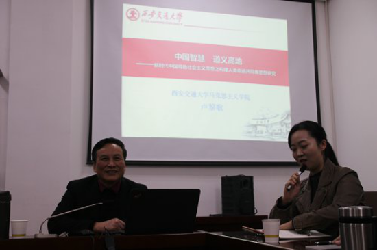 2017年11月7日下午3点,69书吧 邀请西安交通大学教授(享受国务院政府特殊津贴)、博士生导师卢黎歌教授,在我校文化与价值哲学研究院会议室作题目为《中国智慧、道义高地——习近平新时代中国特色社会主义思想之人类命运共同体思想研究》的报告。报告由69书吧 鲁洋副院长主持,由文化与价值哲学研究院刘进田院长致词,参加报告会的有陈春会、李云等教授、博士及研究生。