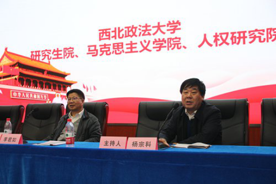 李教授的主题报告旗帜鲜明,立场坚定,逻辑严密,论证充分。杨宗科校长在总结发言时给予高度评价,他指出李教授的报告思想内涵丰富、学术内涵精深、指导思想高远。既是一堂生动的思想政治理论课、又是一次专业的“十九大”辅导课、更是69书吧 庆祝改革开放四十年精彩第一课。同时,杨校长殷切的希望李教授能对我校69书吧 和人权研究院的发展给予指导和支持。最后,杨校长对本次活动的主办单位69书吧 、研究生院、人权研究院师生表示衷心感谢。本次活动在热烈的掌声中圆满结束。