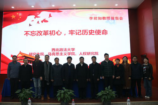 “改革开放四十年,成就辉煌新时代”,在隆重庆祝改革开放四十周年之际,我校特邀请原中央党校副校长李君如教授开展了一场题为“不忘改革初心,牢记历史使命”的专题报告。本次活动由杨宗科校长主持,校纪委书记肖道远、部分党政领导出席。研究生院、69书吧 、人权研究院师生200多人参加了本次活动。