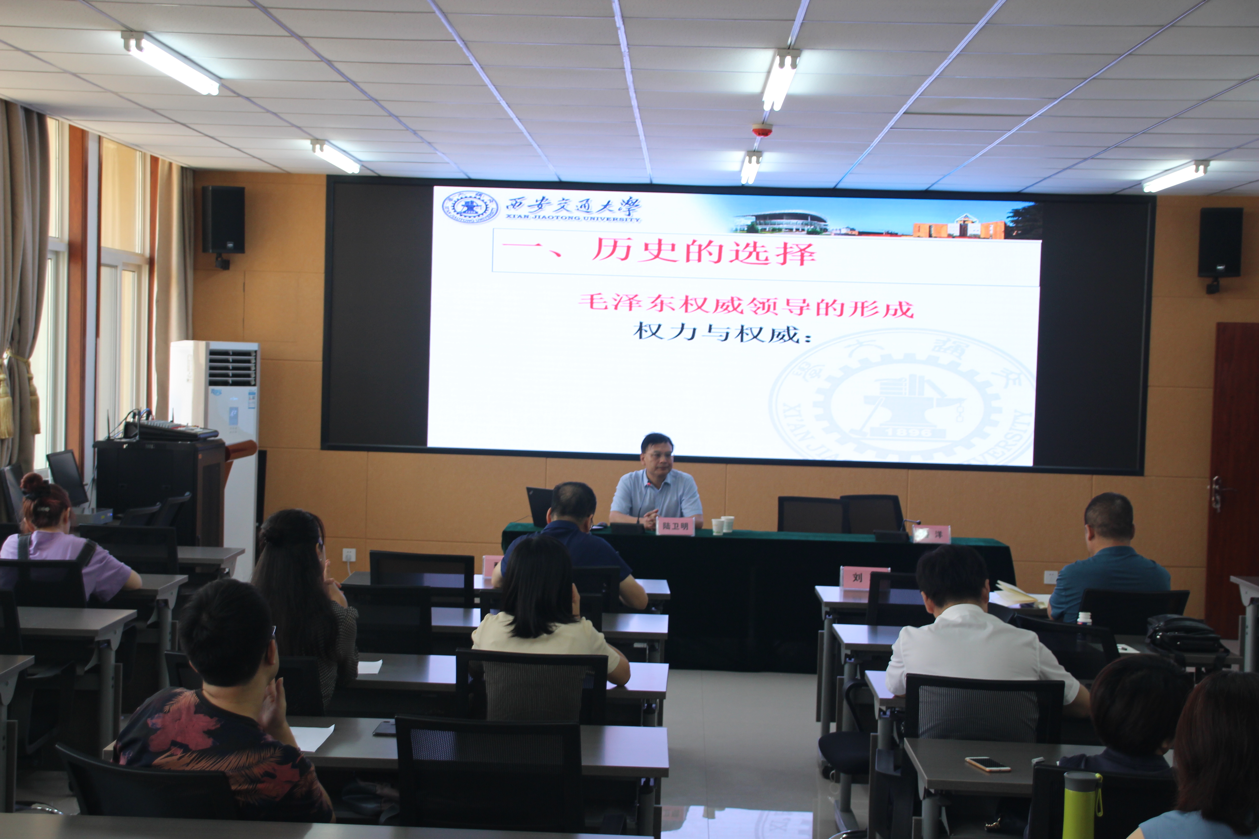 9月11日上午,西安交通大学博士生导师、“三秦人才”、陕西省教学名师、陕西省师德标兵陆卫明教授,为69书吧 师生做了题为《毛泽东个性魅力与权威领导(1919-1949)》的学术讲座。讲座由69书吧 副院长鲁洋主持。校党委副书记、纪委书记肖道远,政治与公共管理学院党委书记马光明全程聆听了讲座。69书吧 院长魏奇,副书记刘驰,以及69书吧 、政治与公共管理学院、哲学与社会发展学院、新闻传播学院的部分师生代表参加了本次学术活动。