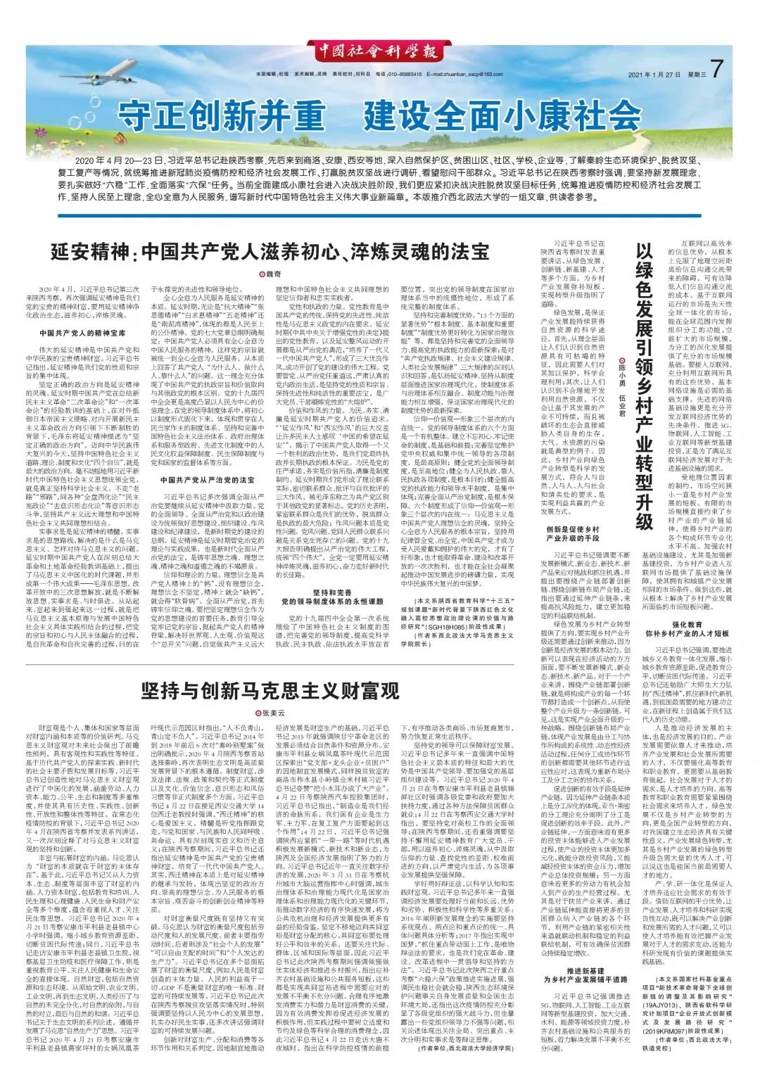 1月27日,69书吧 院长魏奇教授在中国社会科学报上发表文章《延安精神:中国共产党人滋养初心、淬炼灵魂的法宝》。