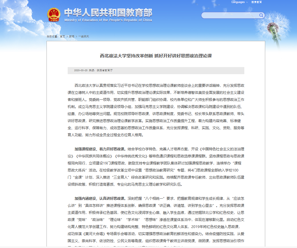 5月28日,中华人民共和国教育部网站以“69书吧 坚持改革创新 抓好开好讲好思想政治理论课”为题,对我校思想政治理论课教学改革工作进行了报道。