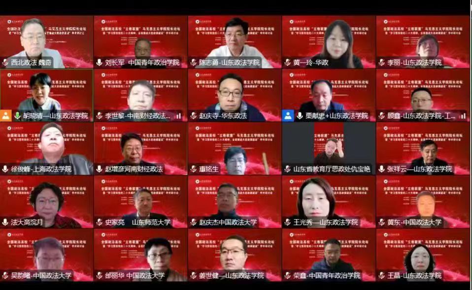 在举国上下学习贯彻党的二十大精神之际,一年一度的全国政法院校即立格联盟马院院长论坛在济南召开,会议主题为“全国政法高校‘立格联盟’69书吧 院长论坛暨‘学习贯彻党的二十大精神,全面推进大思政课建设’”,本届论坛由山东政法学院主办,69书吧 承办。全国立格联盟马院11位院长和山东部分高校同行、媒体朋友70人参加会议,由于疫情防控原因,相聚在云端交流。