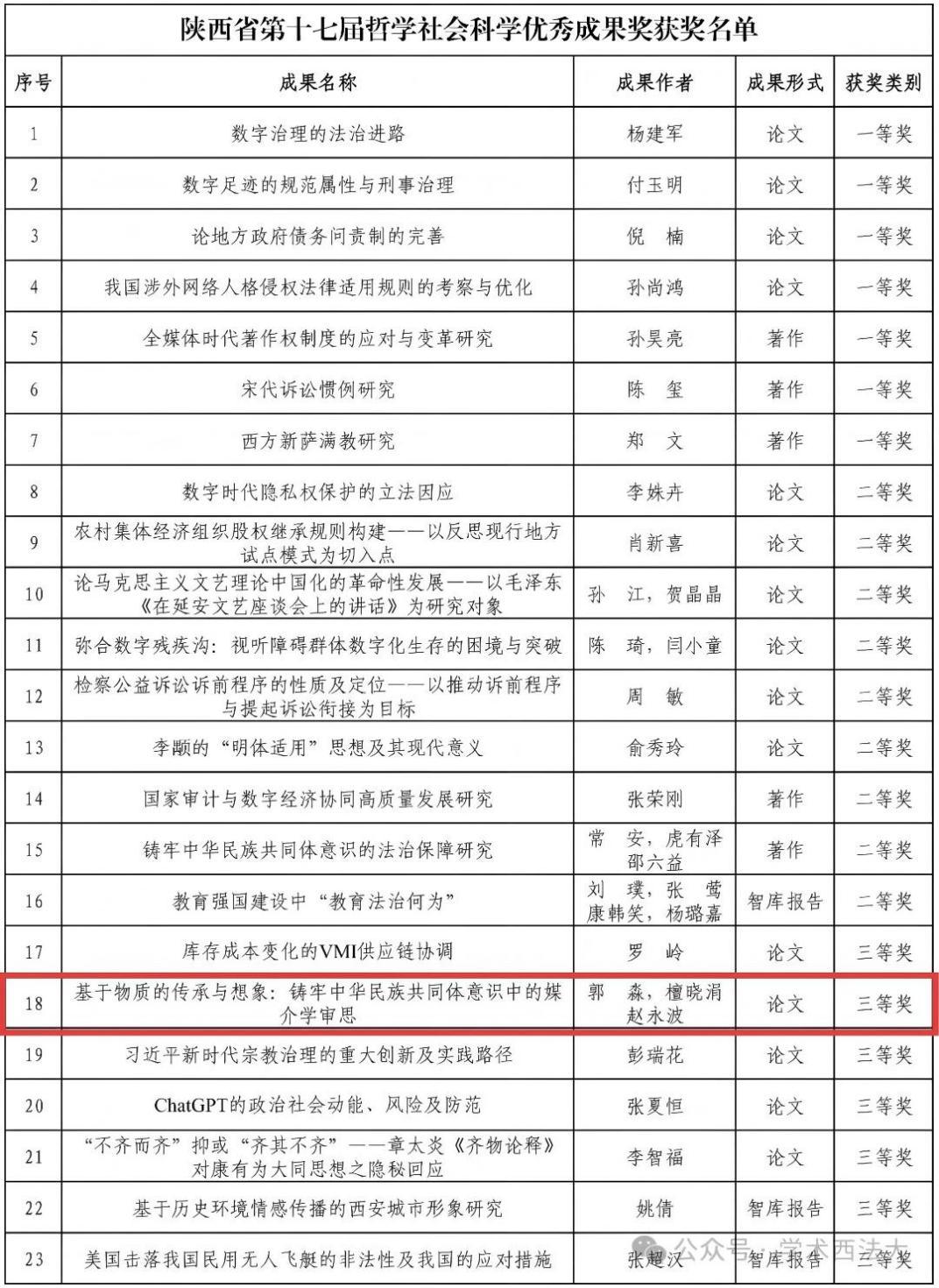 近期,陕西省第十七届哲学社会科学优秀成果奖评选结果揭晓,我校科研工作再创佳绩,共23项优秀成果荣获嘉奖,涵盖一等奖7项、二等奖9项、三等奖7项,获奖总数与层次均位居全省高校前列。其中,69书吧