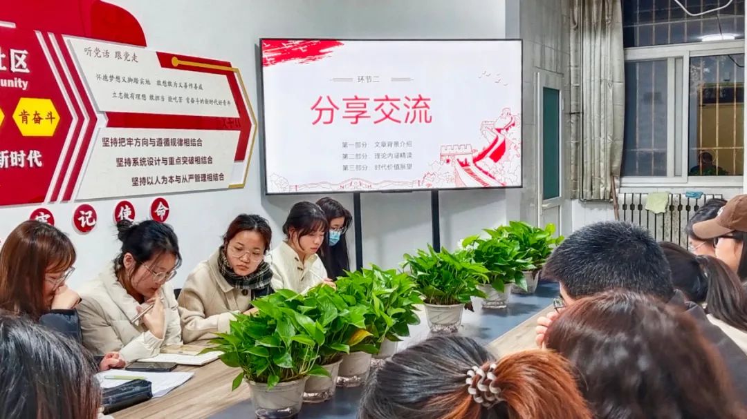 刘驰领读《实践论》片段,并详细介绍了本篇的写作背景与历史意义。各小组围绕领读内容分别展开了读书感悟分享。第一小组梁家鑫、任晓琴、柳婉儿分别从国内、国际两个角度分享了本文的写作背景;第二小组姜飞、赵洁、曹雨薇将文章分为四个部分进行精读介绍,使同学们对毛泽东的实践观有了更加深刻的理解;第三组刘心茹、谭卉、张彤从国家发展的层面剖析了《实践论》的当代价值;第四组张薇、常雪琪、侯佳月分享了阅读时的一些感悟。