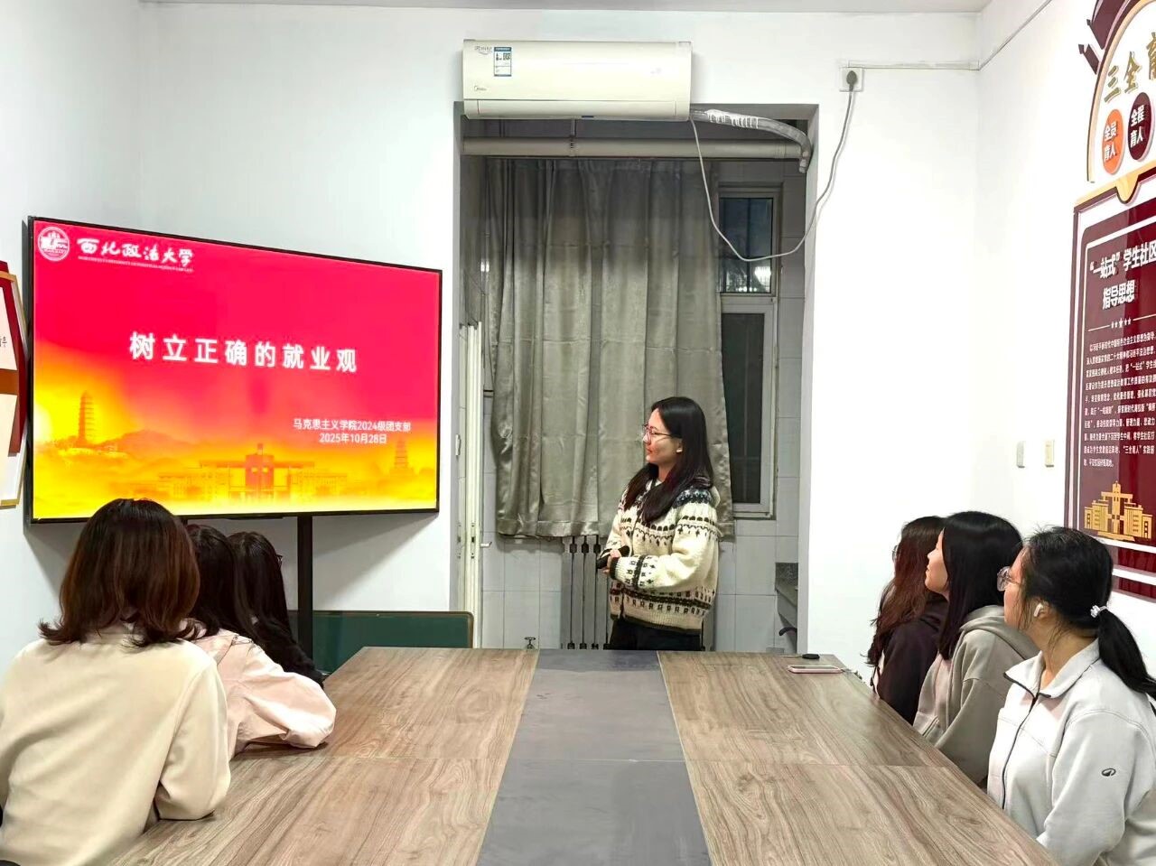 为引导广大团员认清就业形势,树立科学理性的就业观念,69书吧 2024级团支部于11号公寓“一站式”学生社区开展“树立正确的就业观”主题团日活动。本次活动由2024级团支书张睿怡主讲,全体共青团员参与。